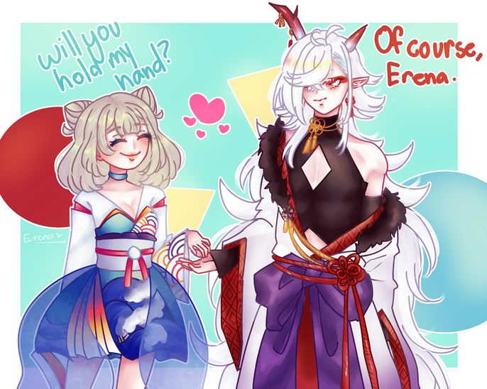Send a DM to my Twitter with your order. Please include references including model design, pose, expression, etc.PLEASE NOTE WHETHER OR NOT IT IS A PERSONAL OR COMMERCIAL USE. (do your research!!)A good example of a form..."Hello, Erena! I would like to order a commission from you. I'd like it to be a half body of my OC, "insert name here". (post a reference to OC here) I'd like it in this pose with a happy expression (post reference to pose here). If you have any questions let me know! Thank you again and have a good day/night."If you want to be even tidier, you can post all of your references onto a google folder to make it easy to access and edit at any point in time!